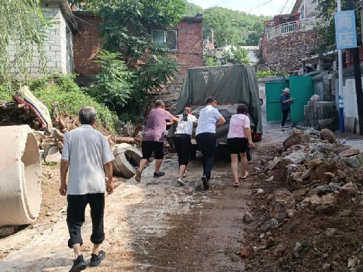 由于灾区道路受阻,山路崎岖,运输物资货车陷入泥坑,衡水老白干志愿团队多次推车前进,争分夺秒地将救灾物资送到受灾人民手中。截止到4日下午,衡水老白干首批捐赠的生活物资已陆续运抵涿州、涞水一线灾区。