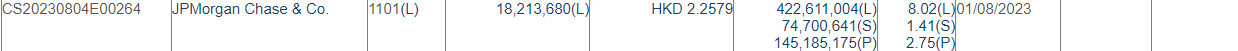增持后,JPMorgan Chase & Co.最新持好仓数目为422,611,004股,持好仓比例由7.68%上升至8.02%。