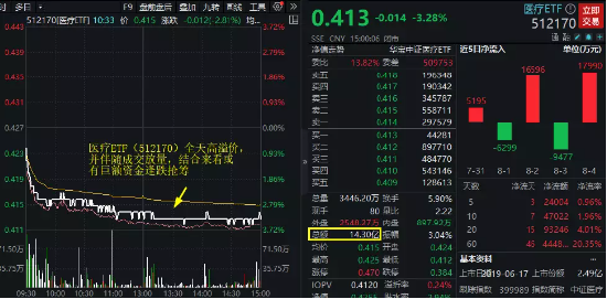 医疗反腐驶向深水区,板块继续下挫,代表ETF——医疗ETF(512170)却获强势买盘资金涌入,盘中溢价交易尤为显著。