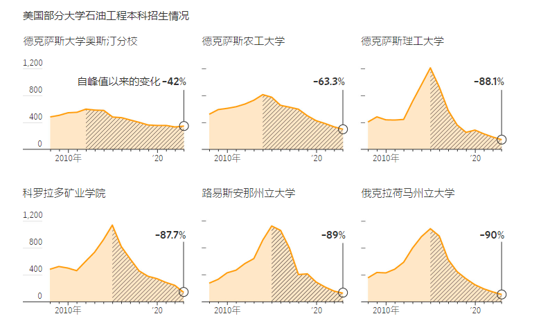 在美国的大学里,石油工程专业的新生人数已经减少到10多年前水力压裂热潮开始前的最低水平。欧洲的大学过去曾为在中东和亚洲开展能源业务的公司培育了许多工程师,但现在也已看到了类似的降温趋势!