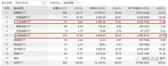 Wind统计显示,截至8月7日,业内行业指数ETF已有75只,主题指数ETF已有379只,两者合计受托规模超6000亿元。