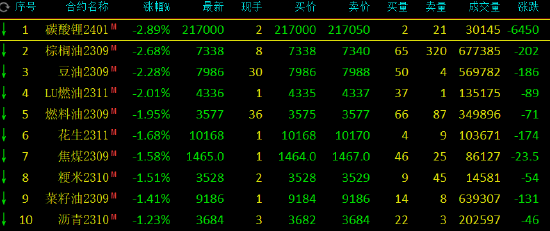 午盘收盘,国内期货主力合约互有涨跌。尿素、红枣、淀粉、玉米、白糖涨超1%。跌幅方面,碳酸锂、棕榈油、豆油、低硫燃料油(LU)跌超2%,燃料油、花生、焦煤、菜油、沥青跌超1%。