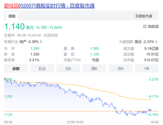 这也带动了港股内房股的下跌。股市方面,在港股上市的碧桂园一度跌超15%,碧桂园服务、富力地产跌近10%,新城发展跌近9%。