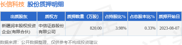 长信科技(300088)8月9日公开信息显示,股东新疆润丰股权投资企业(有限合伙)向中信证券股份有限公司合计质押820.0万股,占总股本0.33%。质押详情见下表: