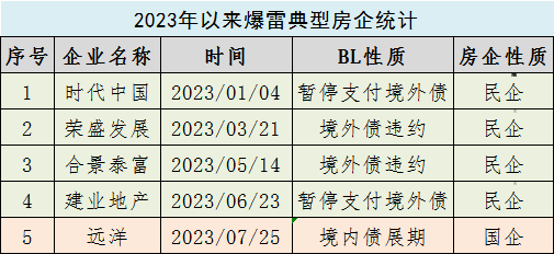 据不完全统计,今年以来,房地产行业违约、爆雷的典型房企就有5家,其中主要是时代中国、荣盛发展、合景泰富、建业地产等民营企业,也包括国企。