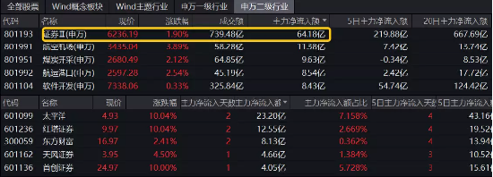 值得关注的是,资金面已有迹可循。主力资金昨日爆买申万二级证券板块64.18亿元,单日吸金额遥遥领先,多只券商股获大额增仓。