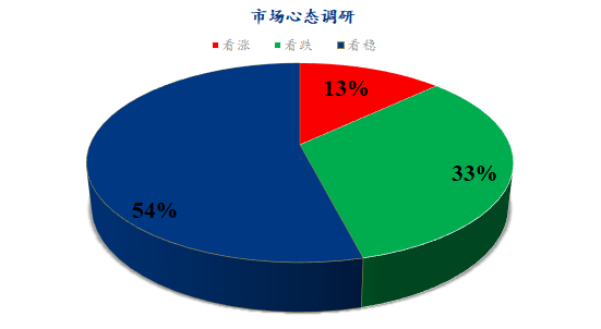 本周Mysteel农产品共对86家企业进行了下周市场心态调研,这86家企业中有34家是贸易端,19家是养殖端,14家是淘汰端,19家是资本投资端。看涨26家,看跌25家,看稳35家。