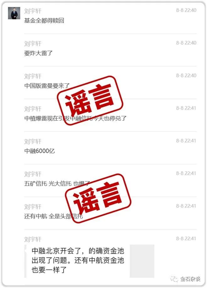 一时间,整个市场都在查找刘宇轩是谁,据说是某个财富机构的总经理,具体是谁笔者也不想深挖。但是这件事爆出后,五矿回应已经报警,中航信托也回应已经报警,光大也做了辟谣回应,但没有报警。