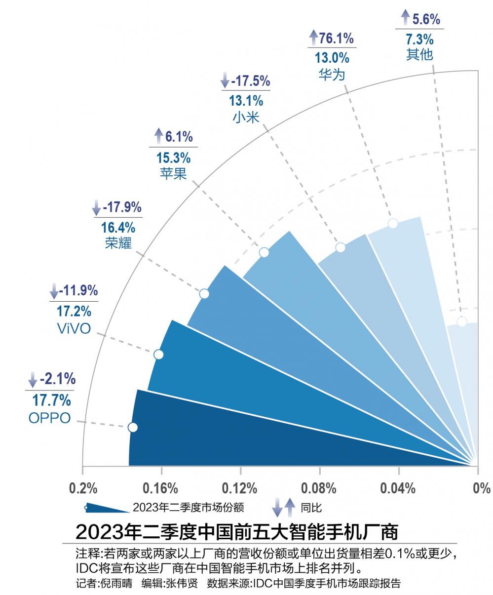 虽然整体需求尚未恢复,但是变量已经出现。从多家调研机构最新发布的数据来看,华为的市场份额正快速回升,在IDC的二季度中国智能手机市场份额排名中,华为和小米并列第五,均达到13%左右的市占率。