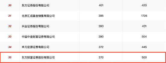 天天基金、东方财富证券分别位居第3、第35