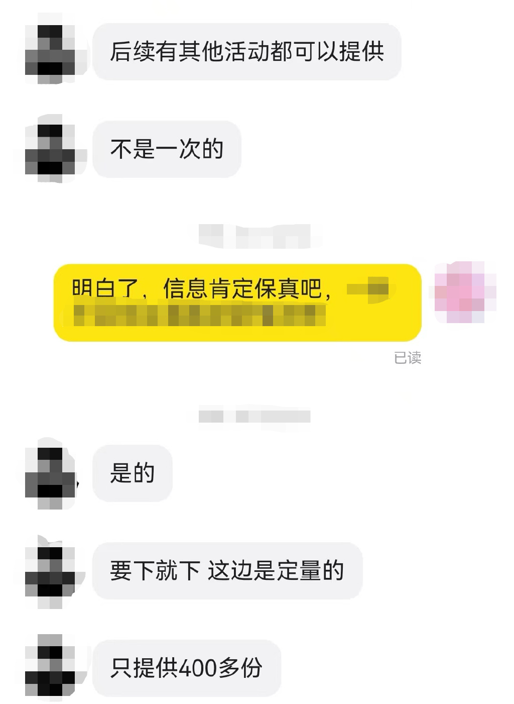 法治网研究院联系了多个卖家,询问是否可以提供明星具体的行程,收到的回复均表示可以。此外,有的卖家按次收费,根据不同明星收费几元到几十元不等。有的卖家则打包售卖,一次花费200元,就可以提供400次信息,单次收费仅0.5元。