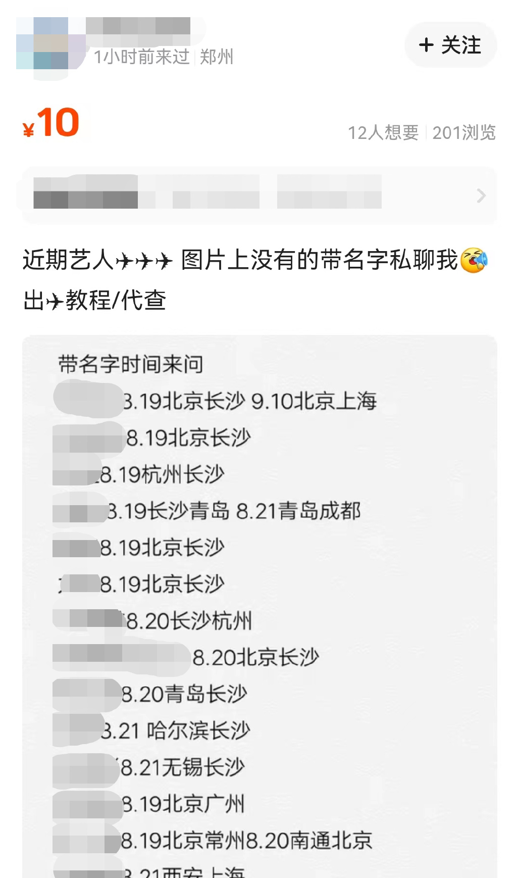 不少网络卖家贩卖明星信息,私人行程被明码标价