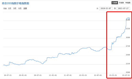 中药协会中药材信息中心官方网站数据显示,截至2023年7月24日,中药材综合200指数为3587.65,比三个月前的4月24日的3126.34上涨了14.8%,比一年前大涨了35%。
