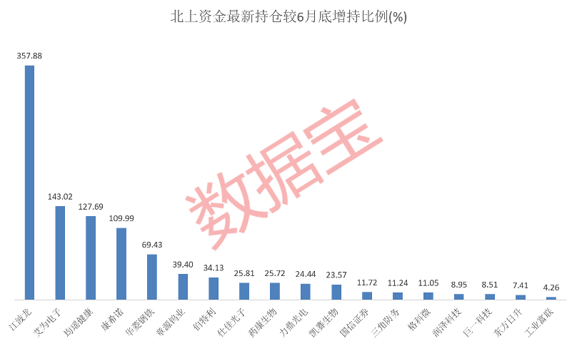 资金方面,下半年以来,北上资金增持18只解禁股。江波龙、艾为电子、均瑶健康、康希诺最新持仓已较6月底翻倍,其中江波龙增幅居首,高达357.88%,北上资金最新持仓186.38万股。