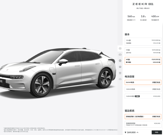 也即,在此次限时降价后,极氪001的最低价格降至26.9万元。在降价之余,极氪001车型全系还可免费选装极境蓝外饰,YOU版、ME版、WE版140kwh电池车型赠送1套7kw智能家充服务套餐等。