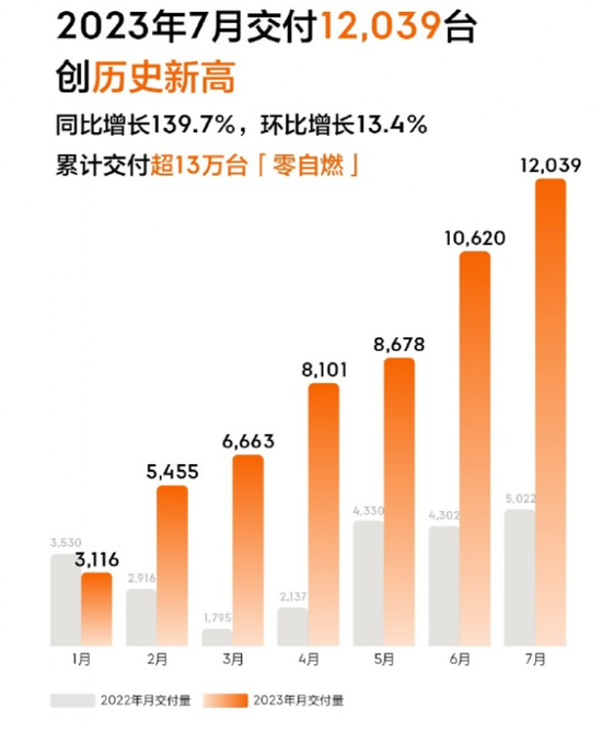 上月,极氪再度发布消息称,极氪001成为全球单车型最快交付破10万台的豪华车型,同时蝉联30万以上纯电车型销冠。7月极氪001交付12039辆,创历史交付新高,成为1-7月30万以上纯电车型冠军。