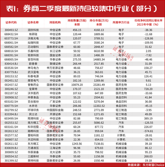 如券商持仓的电力设备股,今年上半年,多只迎来业绩增长。如主营业务涉及光伏的欧普泰净利润同比增长了31.09%,电力系统公司神马电力实现了158.27%的净利润同比增长。二季度末,两者分别被联储证券、申万宏源证券持仓266.44万股、48.66万股,持仓市值分别为2517.85万元、756.67万元。