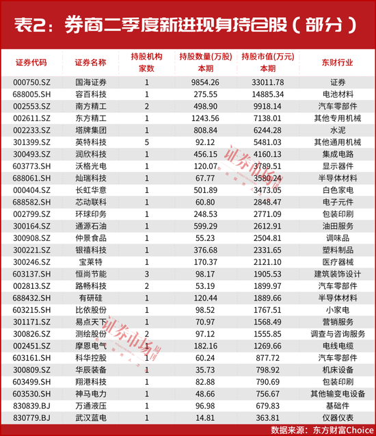 多数标的为券商新进现身持仓