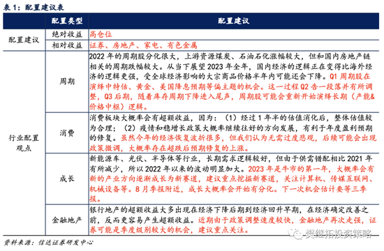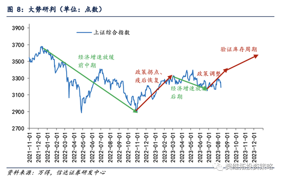 行业配置建议:配置风格或可偏向进攻,短期内先布局超跌地产链、消费链,中特估主题内部下半年超配金融类(证券银行),Q3后期可能会进一步提高上游周期的配置重要性。(1)消费链、地产链:虽然今年的经济恢复波折很多,但我们认为无需过度悲观,后续可能会出现政策微调,大概率存在超跌后预期修复的上涨。(2)中特估&TMT:这些板块前期的调整主要是交易拥挤后的调整,从战略上,由于经济尚未恢复,大部分板块盈利验证一般,所以有长期逻辑的中特估和TMT依然会有机会,不过由于中报临近,或不宜追涨,相对低位的中特估可以持续关注。如果经济持续弱,中特估中建筑公用事业可能会偏强,而如果经济预期逐渐企稳,中特估中金融和周期可能会更强。(3)Q3建议关注周期:周期股当下受到全球库存周期下行的影响,整体偏弱,但随着库存周期下降进入尾声,2023年Q4-2024年,宏观需求存在回升的可能。我们认为,考虑到长期产能建设不足,需求、供给和估值可能会共振。