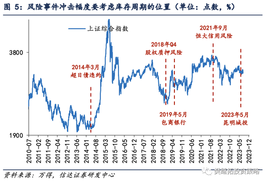 (3)最近几年信用风险事件对股市的影响幅度大多比较短暂。近期碧桂园信用风险事件再次升温,但由于国内库存周期的下降风险大部分已经释放,按照日本和美国的经验,近期信用事件演变成类似雷曼时刻的概率很低。2014年以来,每一次经济下行期,均会出现信用风险事件,对股市后续的涨跌并没有明确的指示意义,只是经济偏弱的同步表征。