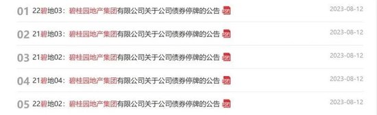 8月12日深夜,碧桂园在深交所和上交所分别发布公告称,因近期拟就公司债券兑付安排事项召开债券持有人会议,为保证公平信息披露,保护广大投资者的利益,根据交易所相关规定并经碧桂园地产集团申请,其旗下11只境内债券将于8月14日开市起停牌,复牌时间另行确定。