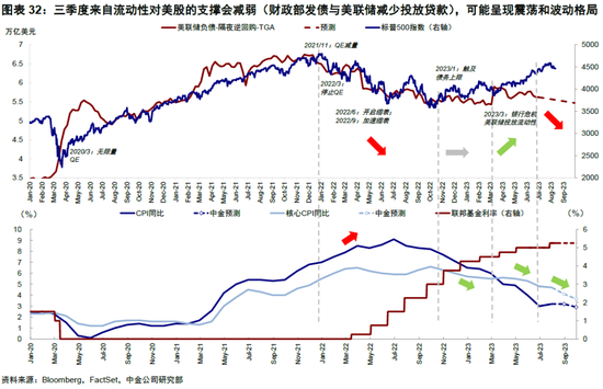 1)深度调整概率相对较小。我们7月中判断,三季度来自流动性对美股的支撑会减弱(财政部发债与美联储减少投放贷款),可能呈现震荡和波动格局,但是盈利的支撑使得出现“戴维斯双杀”的深度调整可能性较小。换言之,如果调整幅度较大,可以再选择介入。