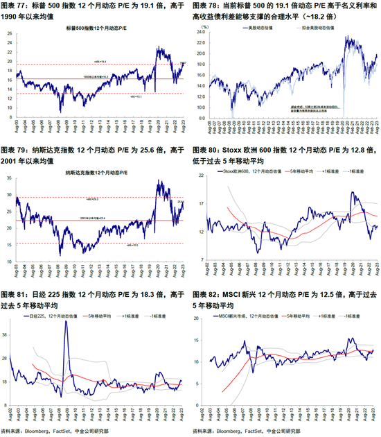 ►市场估值:美股估值高于增长和流动性合理水平。当前标普500的19.1倍动态P/E高于实际利率和高收益债利差能够支撑的合理水平(~18.2倍)。