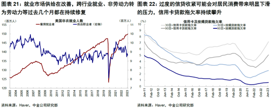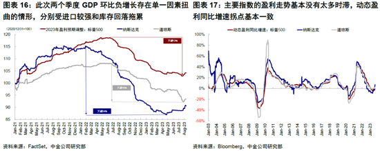 ►明年压力增加。从时间节奏上,三季度看依然具有相当韧性,亚特兰大联储GDP Now模型预计三季度美国GDP有可能还会环比加速。不过我们预计明年压力或初步增加,主要是考虑到库存周期明年二季度或逐步见底,今年三季度信用收缩可能增加,超额储蓄明年二季度左右基本消耗完毕。