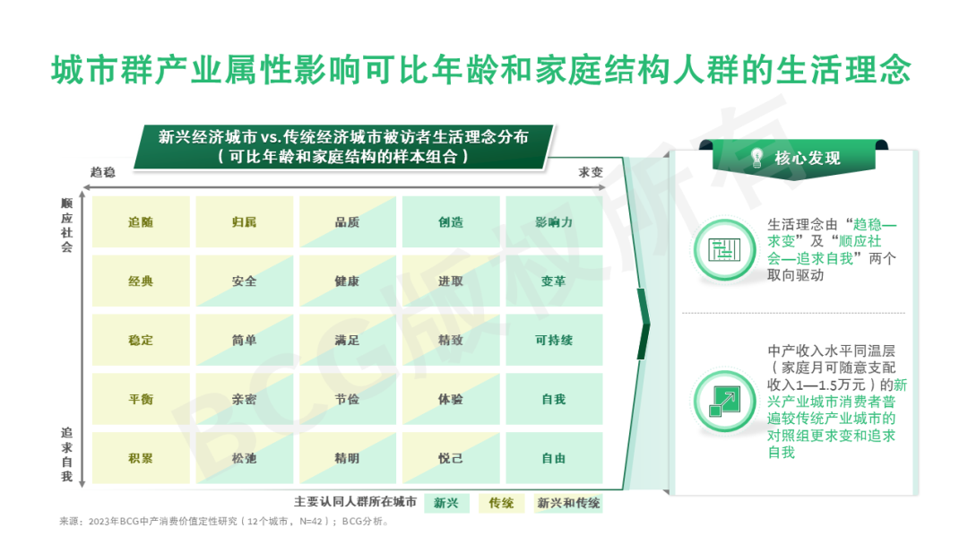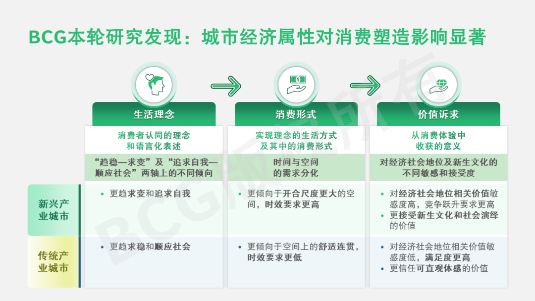 我们认为,下一个十年中国市场的中产消费将继续演变,城市产业经济属性将影响消费者的生活理念——消费形式——价值诉求三段式。