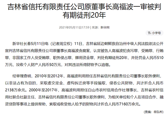 公开信息显示,吉林信托首任董事长为张兴波。2007年,高福波担任董事长;2015年10月,由高福波变更为李伟;2018年7月,由李伟变更为邰戈;2021年5月,由邰戈变更为张洪东。