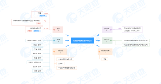 股权穿透显示,现有三家股东,禾银控股有限公司(简称:禾银控股)持股88.11%,宁波禾银精华投资管理合伙企业(有限合伙)(简称:禾银精华)持股7%;自然人王醒直接持股4.89%,连同由其控股的禾银控股及旗下禾银精华,合计实控比例为80.96%。北部资产旗下唯一一家参股子公司,为北天治北部资产管理有限公司(简称:天治北部),持股49%。