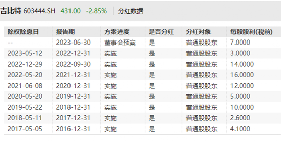 数据显示,吉比特自2017年上市以来,保持每年分红的频率,最近两年更是一年2次的分红频度。加上这次每股7元的分红,上市以来每股现金分红(税前)已经高达73.7元,已经超过该股上市发行价54元。