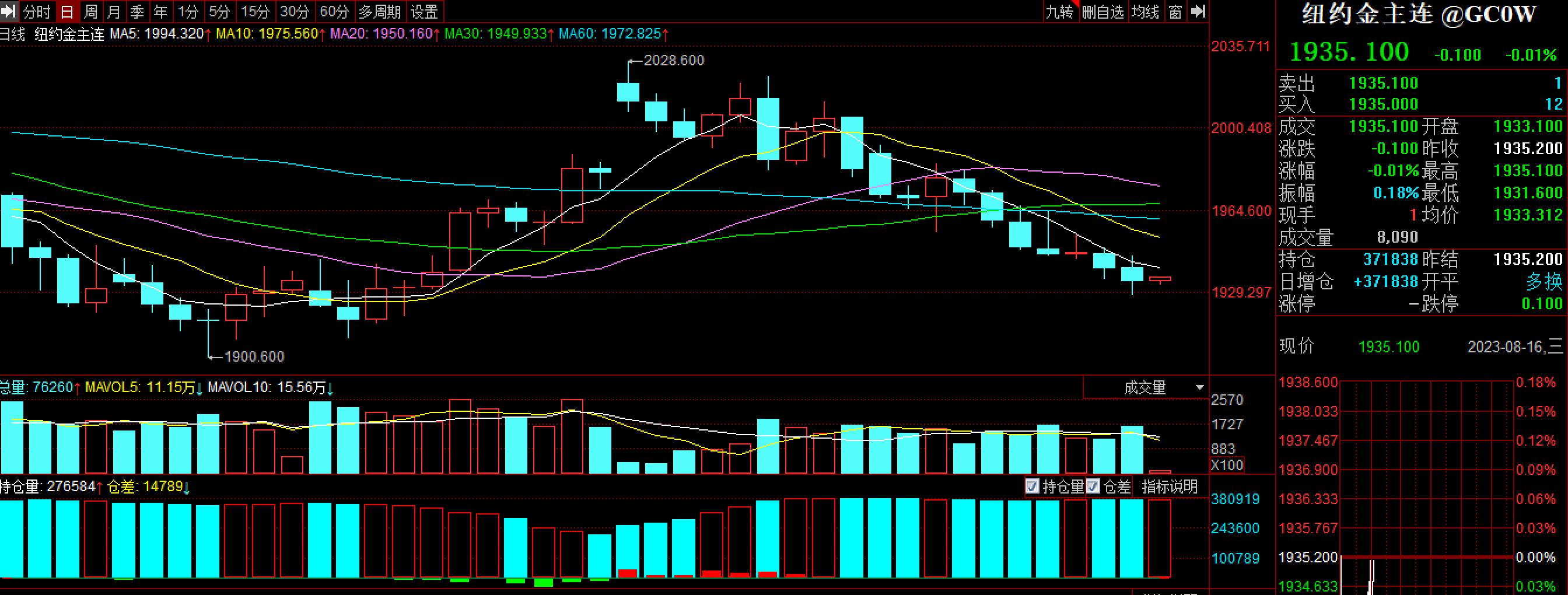 展望后市,美国通胀有所放缓,软着陆预期增强,重点关注汇率走势,短期内预计贵金属价格或以震荡为主,操作建议短线思路。