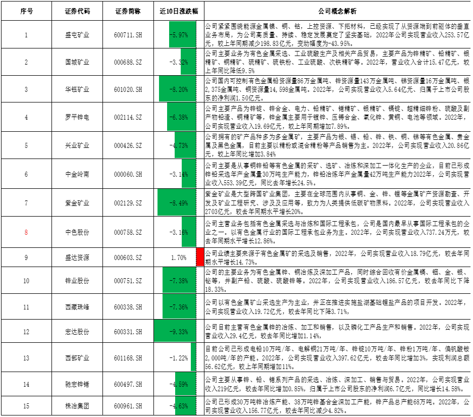 【锌产业链关联个股】