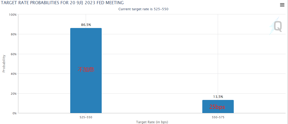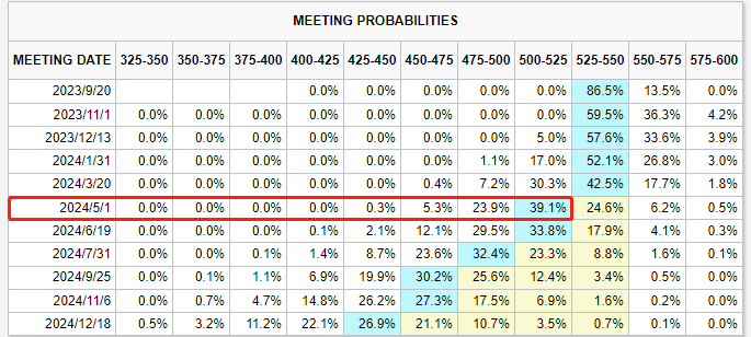 此外,期货交易员目前也认为上月下旬的加息将是本轮周期内的最后一次加息,且美联储FOMC将在明年5月份开始降息。