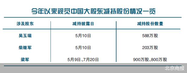 今年7月20日,视觉中国称梁军再度减持公司股份,分别于5月10日、6月14日、16日、7月12日及19日通过大宗交易方式减持公司股份100万股、200万股、200万股、100万股及200万股,合计减持公司股份800万股,占公司总股本的1.14%。