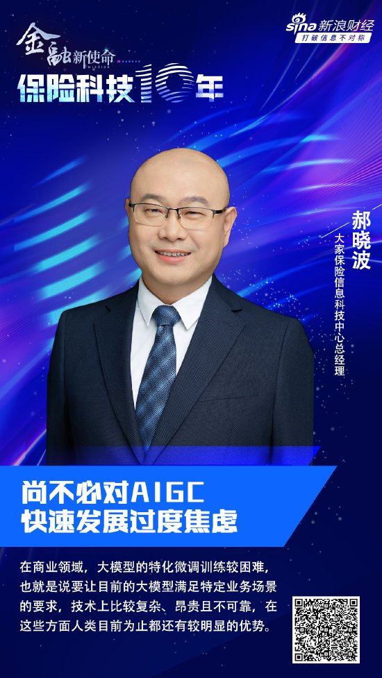 近年来,全球保险数字化进程呈加速态势,科技在保险行业的应用日益广泛深入。面对新兴技术,险企该如何利用保险科技提高运营效率,推动产品质量和服务高质量发展,迎接下一个十年的新挑战?新浪财经《保险科技十年》本期对话大家保险信息科技中心总经理郝晓波。