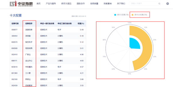 中证指数公司官网显示,中证信息技术应用创新产业指数,是从沪深市场中选取不超过50只业务涉及基础硬件、基础软件、应用软件、信息安全、外部设备等细分领域的上市公司证券作为指数样本,反映信创产业上市公司证券的整体表现。截至目前该指数自由流通市值超过7000亿元,样本平均自由流通市值为143.27亿元。其中,前十大权重股市值占比接近50%,分别为浪潮信息、深信服、恒生电子、用友网络、广联达、金山办公、中科曙光、三六零、纳思达、启明星辰。