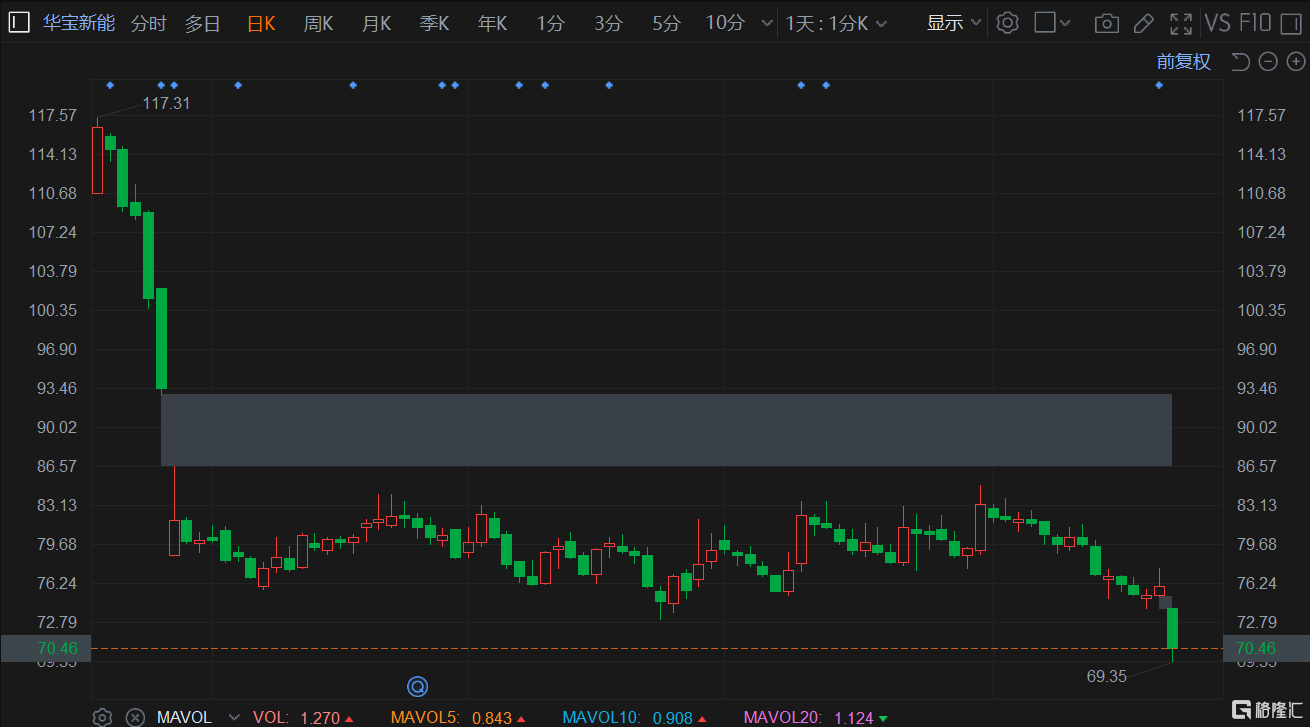 华宝新能(301327.SZ)跌超7%,最低报69.35元创上市新低,总市值87.8亿元。公司上周五盘后公告,上半年营收9.21亿元,同比下降29.93%;归母净利润亏损5104万元,同比由盈转亏;扣非净利润亏损8230万元,同比亦由盈转亏。在全球消费放缓的大背景下,随着市场竞争加剧,行业竞争进入白热化,本期公司产品销售也受到一定的影响。