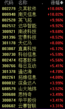 智慧政务板块走势活跃,南天信息等个股涨停。