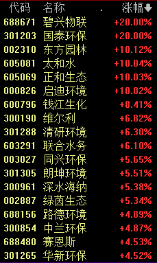 环保板块也大涨,碧兴物联、国泰环保迎来20%涨停。