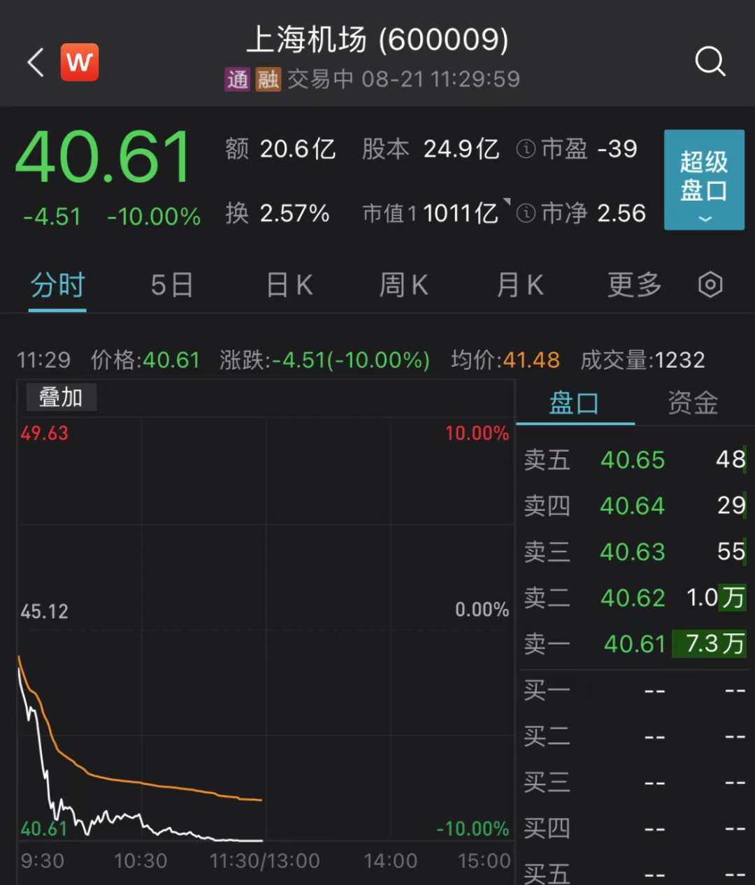 白马股闪崩仍在延续,继上周的韦尔股份、金龙鱼、晶科能源等之后,今天上午,上海机场跌停了。