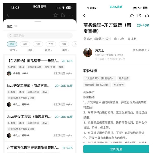 在部分招聘网站上,东方甄选已经挂出淘宝直播相关招聘信息,组建包括对接淘宝直播的商务经理、视觉设计师、选品经理等运营团队。此外,东方甄选也在整合淘宝平台商家资源,一些品牌商家已经收到合作邀约。