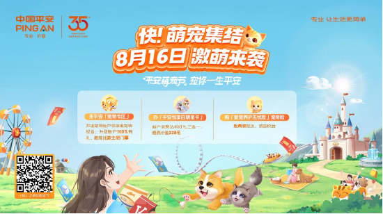 8月16日,中国平安上线首届‘平安萌宠节’宠物主题活动,以“宠你一生平安”为主题,围绕宠物用品、服务及宠物主金融保障需求,整合平安旗下成员公司资源,首发平安‘宠物专区’,提供一站式养宠综合服务体验。中国平安深刻洞察宠物主养宠现状,依托多年深耕综合金融的经验优势,延伸服务触角,布局“宠物它经济”,试水宠物生态圈,为宠物主提供全方位产品、服务和权益。