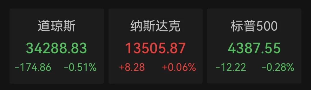 当地时间周二,美股三大股指收盘涨跌不一。截至收盘,道指跌0.51%,标普500指数跌0.28%,纳指涨0.06%。