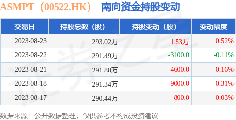 8月23日北向资金增持1.53万股ASMPT(00522.HK)。近5个交易日中,获南向资金增持的有4天,累计净增持2.66万股。近20个交易日中,获南向资金减持的有11天,累计净减持158.24万股。截至目前,南向资金持有ASMPT(00522.HK)293.02万股,占公司已发行普通股的0.7%。