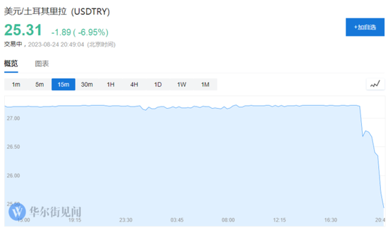 消息后,土耳其资产大幅上涨,里拉扭转了早些时候的跌幅,兑美元涨幅持续扩大至7%,创一年多来的最大涨幅。土耳其5年期债务违约保险成本降至400个基点以下,土耳其银行股飙升,伊斯坦布尔证交所Borsa Istanbul银行指数上涨近6%。