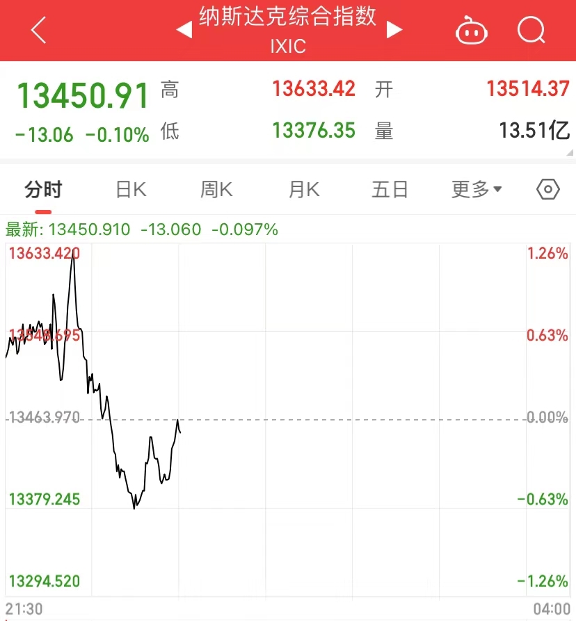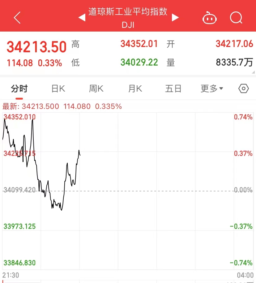 在演讲之后,市场动荡不安,道琼斯工业平均指数脱离盘中高点,跳水近300点,随后上涨,截至发稿前,道指涨0.33%,纳指下跌0.1%,标准普尔500指数上涨0.16%。