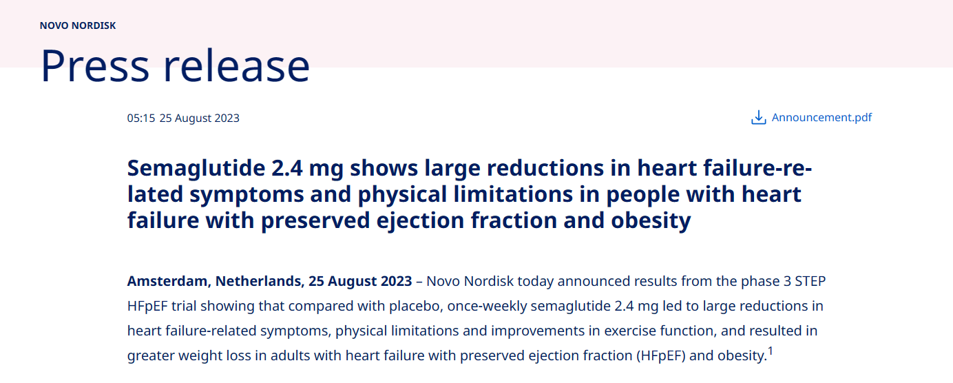 这项研究的负责人、密苏里州堪萨斯城圣卢克中美洲心脏研究所的心脏病专家Mikhail Kosiborod博士表示,在治疗肥胖患者心力衰竭方面,Wegovy有潜力带来一种根本性的范式转变。