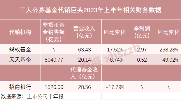 截至8月25日,公募基金代销“三巨头”——蚂蚁基金、招商银行、天天基金上半年代销基金相关财务数据悉数出炉。